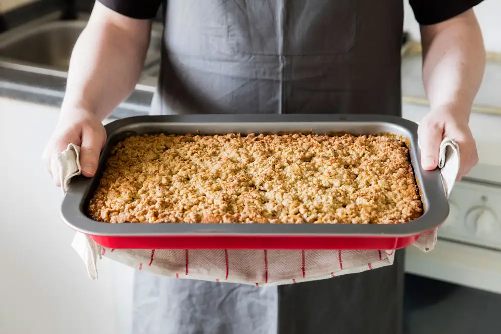 Spread evenly and bake for 30–40 minutes, shaking halfway through.