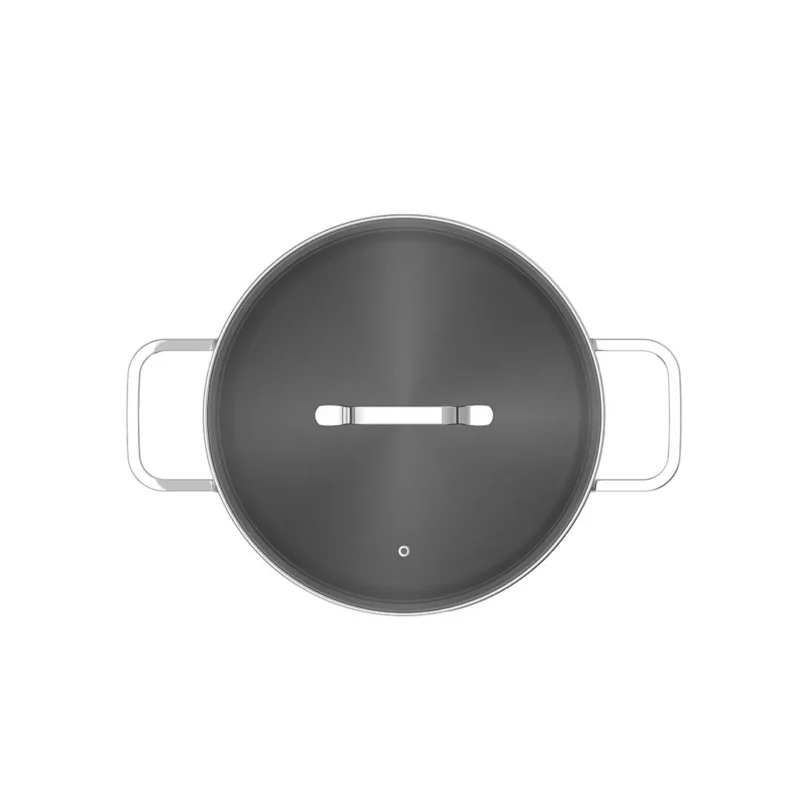 Whether you’re making a batch of soup to last a few days, a homemade broth or a large portion of pasta, this stainless steel stew pot with lid is a breeze to prepare. Made from high quality recycled stainless steel with a stylish satin finish, the pot has a capsule base that ensures quick and even heat distribution on all types of cookers, including induction. When you’re ready to cook, simply use the handy capacity markings to measure out the right quantities and place the clear glass lid with integrated steam vent on top to speed up the heating process and keep an eye on your food as it cooks. Vitro-ceramic.