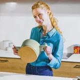 This cork trivet helps you to protect your kitchen surface or dinner table in style. It won’t scratch, stain or damage the surface and provides plenty of room for a pot or pan. On top of that, the trivet has a magnetic center that easily stays on the bottom of stainless steel cookware.