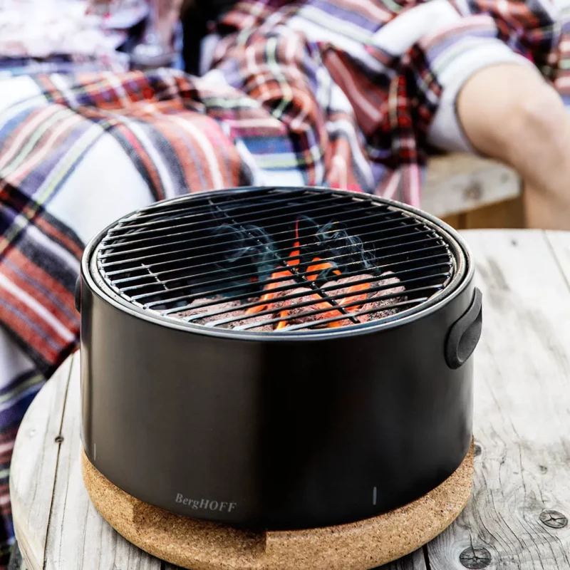 Take your grill on the road with this award-winning table barbecue! Whether you want to have a cookout in your garden, on your balcony, at the park or on the beach, BergHOFF’s stylish table grill is always up for a trip. Gather everyone around the barbecue, enjoy the scene and grill your food exactly the way you want thanks to the adjustable airflow created by the multipurpose lid and trivet. An added bonus is that all the elements are removable which allows for easy cleaning afterwards.